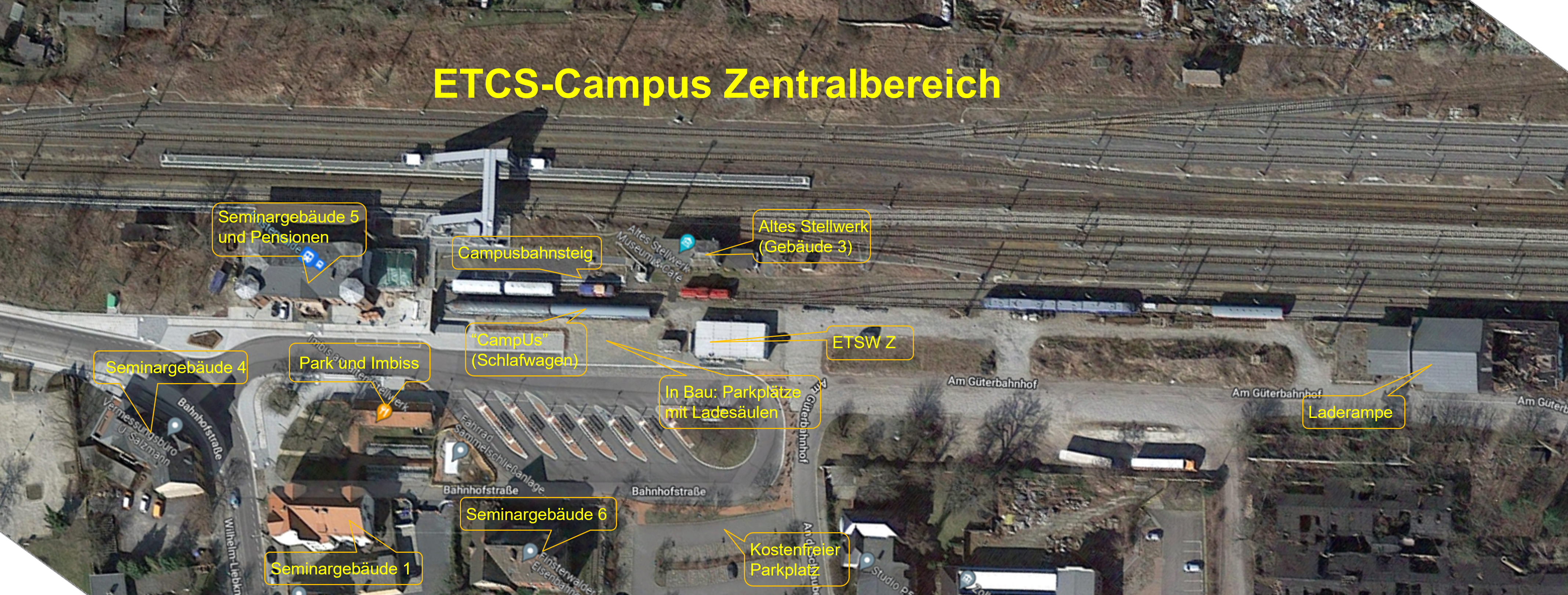 Zum Campus gehören neben mehreren Seminar- und Schulungsgebäuden im Zentralbereich eine nichtbundeseigene Eisenbahninfrastruktur mit einer Gesamtlänge von ca. 12 km.