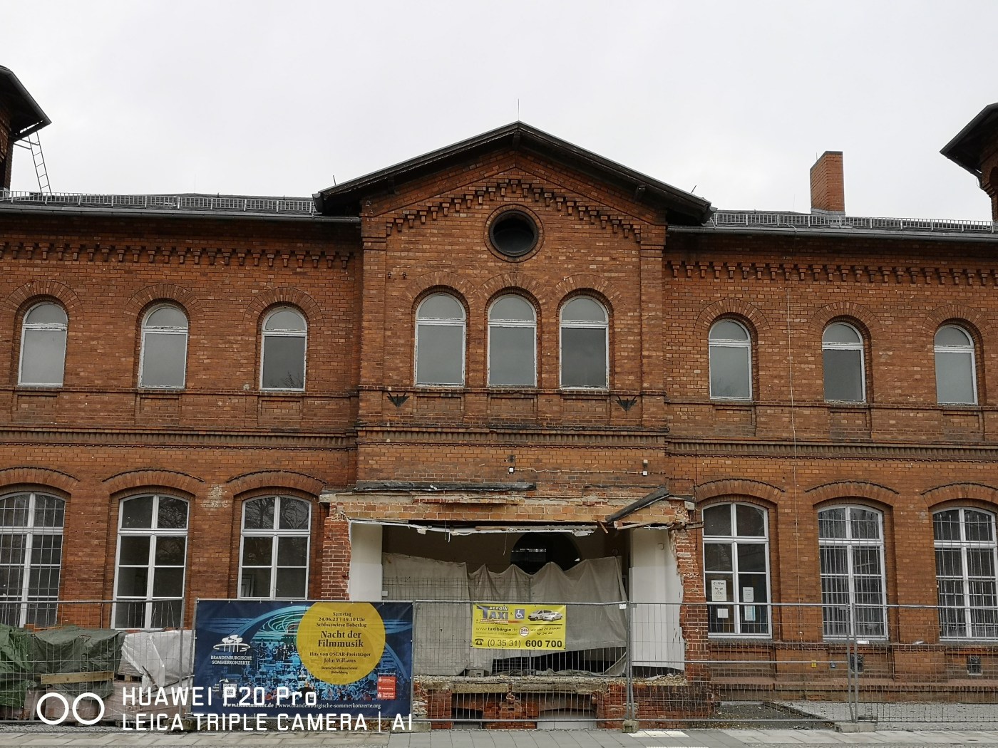 In der Mitte des ehemaligen Bahnhofsgebäudes klafft seit kurzem ein großes Loch. Im Zeitraum zwischen dem 6. und 12. Februar sind unbekannte Fachkräfte für unzeitige Eigentumsübertragung in die Baustelle eigedrungen und haben das historische Uhrwerk samt Zifferblatt entwendet.
